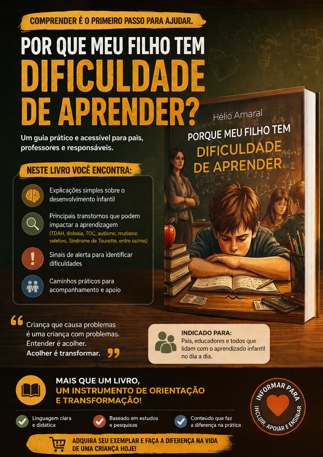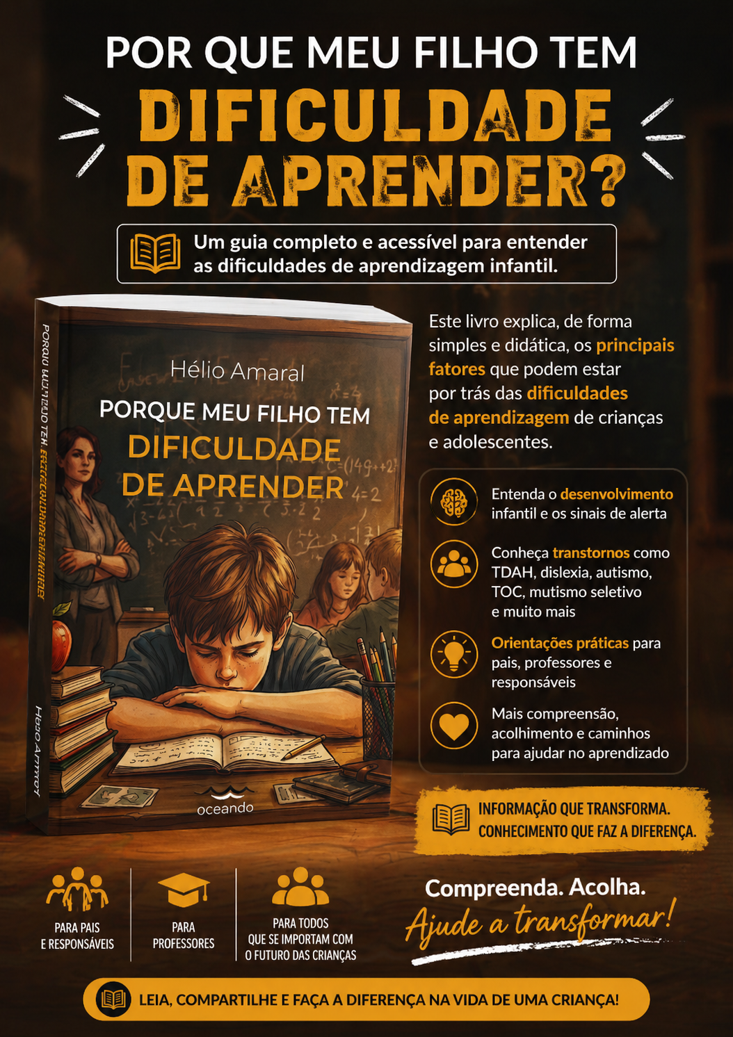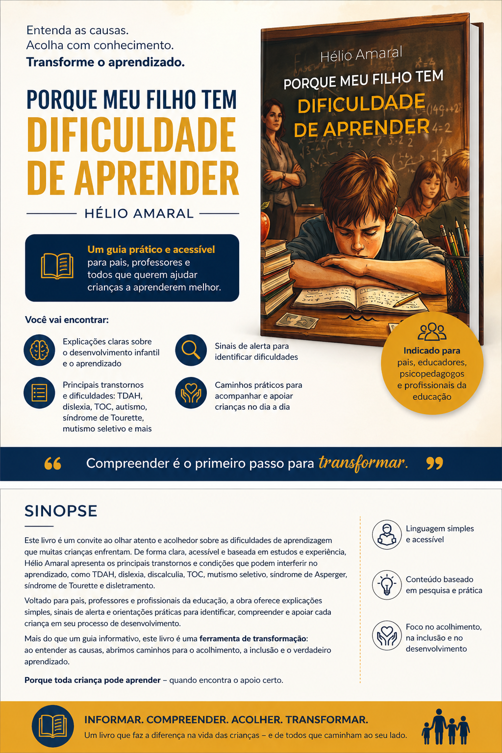 Em Por que meu filho tem dificuldade de aprender?, Hélio Amaral apresenta um guia claro, direto e acessível que ajuda pais, professores e responsáveis a compreenderem os principais fatores que podem interferir no desenvolvimento infantil e no processo de aprendizagem.