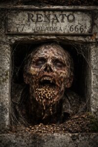 Com vermes saindo de sua boca, era Renato, detentor do túmulo 77, quadra 666.